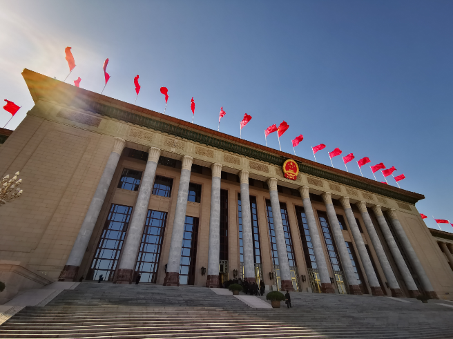 △下午两点的人民大会堂东门外。虽是早春,北京的气温已经攀升到近20度。(央视记者张晓鹏拍摄)