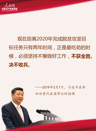1. 现在距离2020年完成脱贫攻坚目标任务只有两年时间,正是最吃劲的时候,必须坚持不懈做好工作,不获全胜、决不收兵。