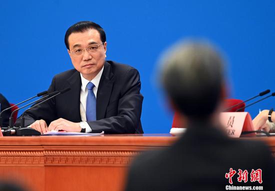 图为李克强听取记者提问。中新社记者 侯宇 摄