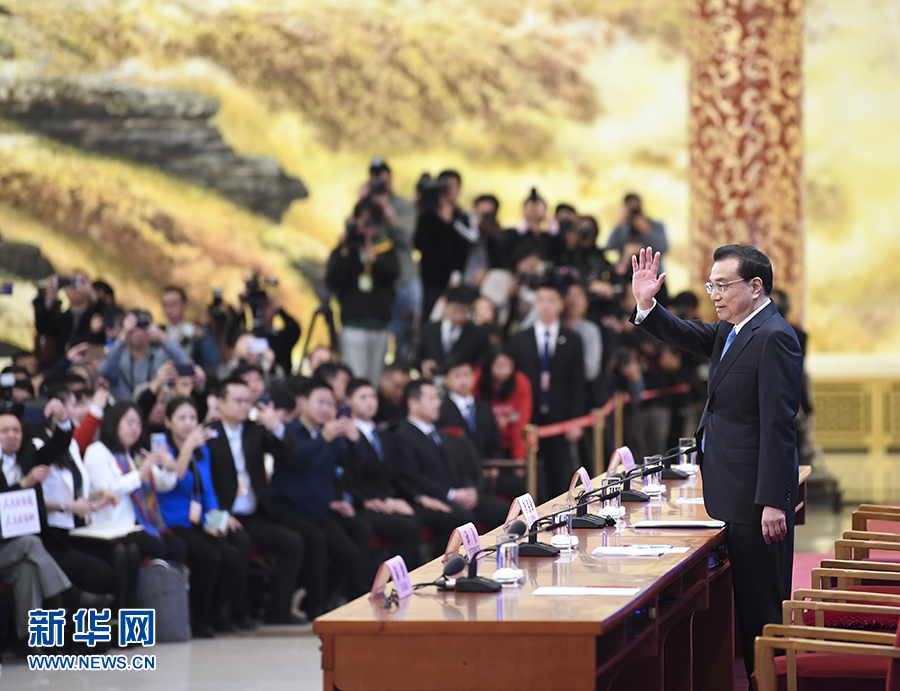 3月15日,十三届全国人大二次会议在北京人民大会堂举行记者会,国务院总理李克强应大会发言人张业遂的邀请会见中外记者,并回答记者提问。 新华社记者 殷博古 摄