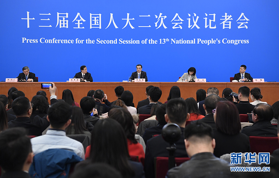 3月15日,十三届全国人大二次会议在北京人民大会堂举行记者会,国务院总理李克强应大会发言人张业遂的邀请会见中外记者,并回答记者提问。 新华社记者 邢广利 摄