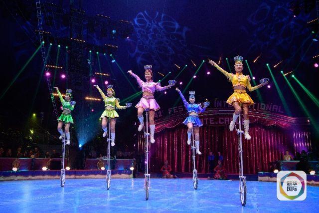 2018年1月19日,来自内蒙古民族艺术剧院杂技团的演员在摩纳哥蒙特卡洛马戏节上表演《五人踢碗》。新华社记者 陈益宸 摄