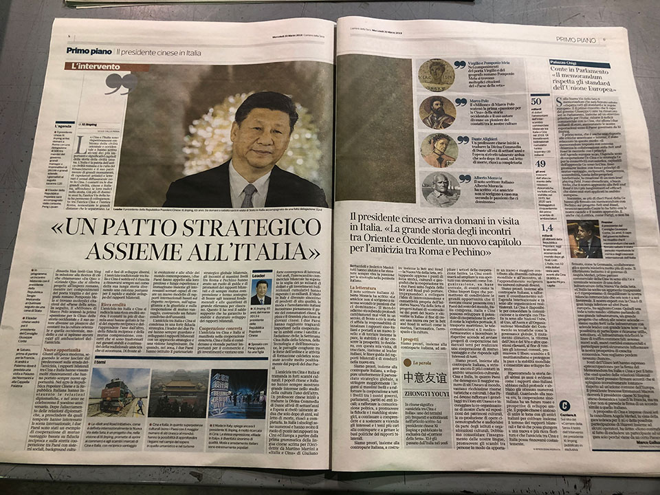 当地时间3月20日,意大利《晚邮报》发表了习近平的一篇署名文章,题为《东西交往传佳话 中意友谊续新篇》。