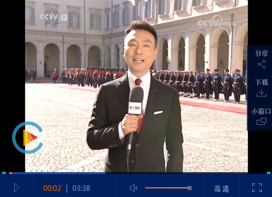 早春的罗马煦风微送,晴空万里。习近平和夫人彭丽媛乘车在身着盛装、雄姿英发的意大利骑兵护卫下,前往总统府广场。