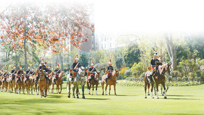 3月26日,法国总理府内,身着盛装的骑兵列队欢迎习近平主席。