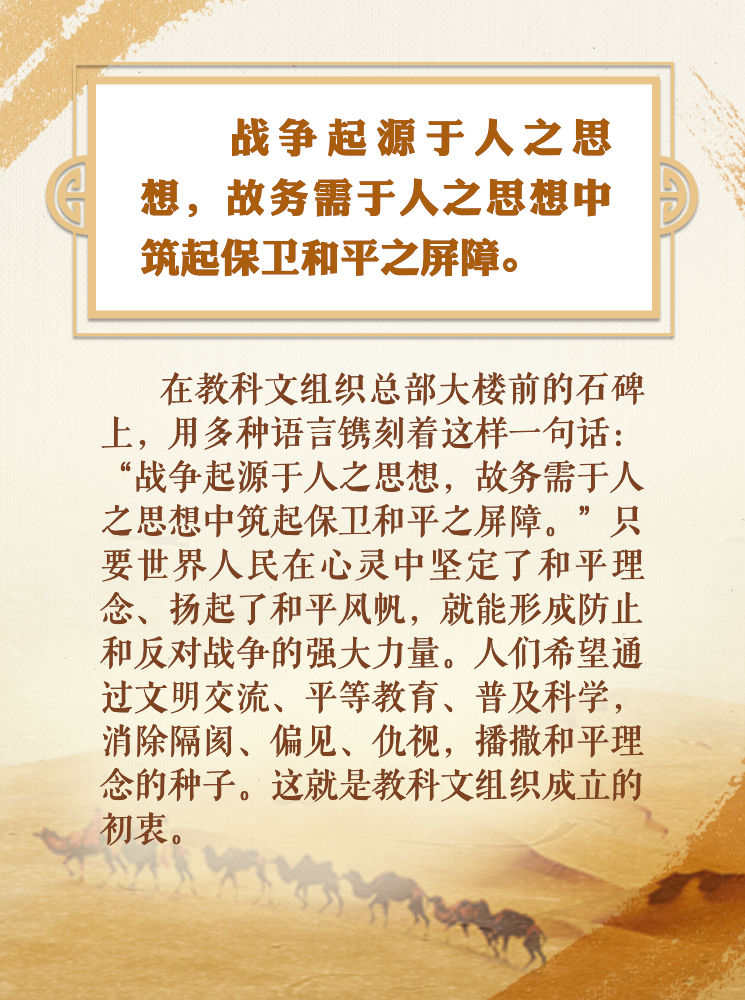 2014年3月27日,习近平第一次访问联合国教科文组织总部,提出了关于交流互鉴的新文明观。在讲话中,习近平旁征博引,用诸多中外名句向世界描绘了一幅文明交流互鉴、人类命运与共的美好图景。