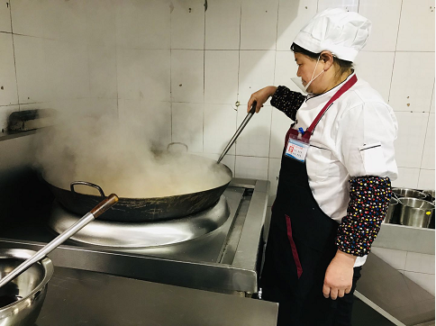 △炊事员焦大翠正在给师生们做晚餐。(央视记者拍摄)