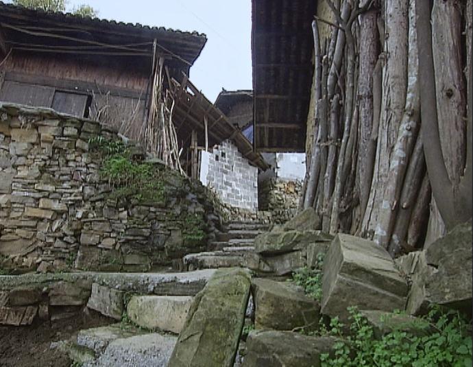 △潮湿的气候给村里的石阶披上了一层湿滑的青苔。