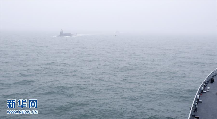 这是中国某新型核潜艇接受检阅。新华社记者 李紫恒 摄