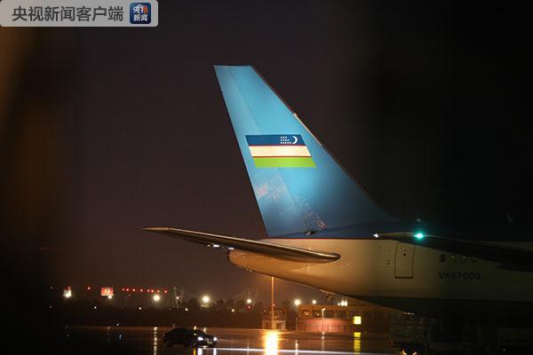 △乌兹别克斯坦总统米尔济约耶夫的专机于24日晚间抵达北京。(央视记者魏帮军拍摄)