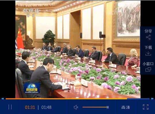 央视网消息(新闻联播):国家主席习近平26日在人民大会堂会见希腊总理齐普拉斯。