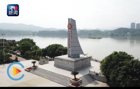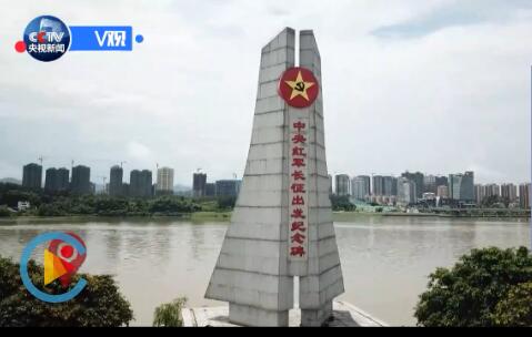 △中央红军长征出发纪念碑,高19.34米,为纪念中央红军1934年10月在此渡河出发而建。碑身的造型像一对帆船,象征着中央红军从此扬帆出征。(央视记者杜曦晨拍摄)