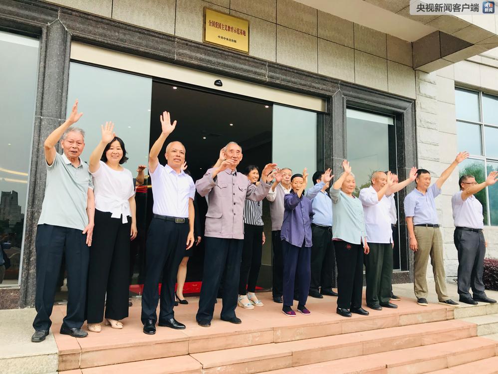 △这是红军后代及革命烈士家属代表当天在纪念馆门口挥手告别。(央视记者拍摄)
