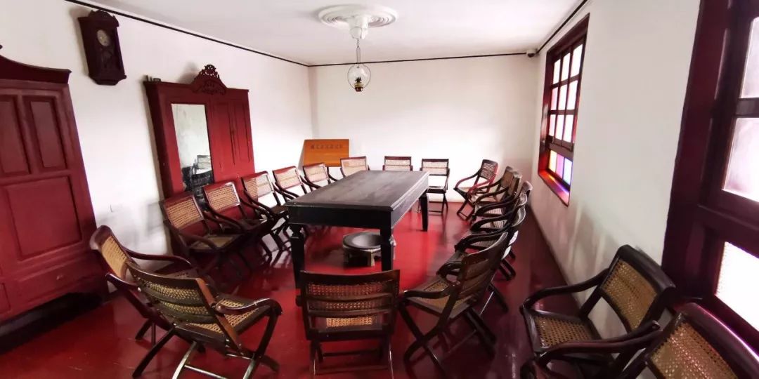 △遵义会议召开的会议室按当年场景摆放着会议桌椅。