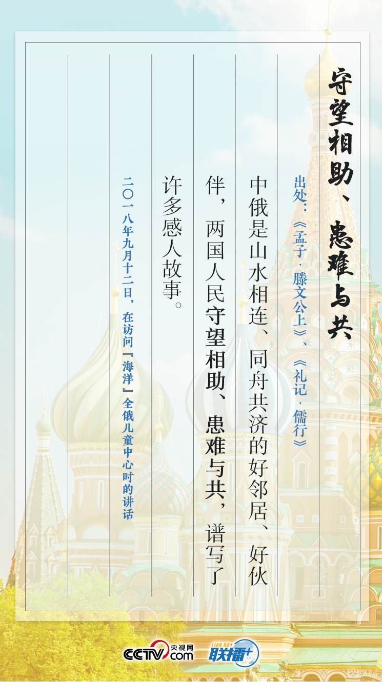 “亲仁善邻,国之宝也。”广泛采撷古人的经典名句,巧加点化,赋予其鲜活的时代价值是习近平讲话的一大特色。近年来,习近平曾多次引用古文典籍中的佳句,情真意切地表达了对中俄关系的高度重视,寓意深邃,生动传神。央视网特整理,带您一起学习经典,品味其中的独特韵味。