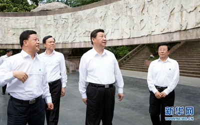 遵义市凤凰山南麓的红军山烈士陵园,集中安葬着一批红军烈士。16日上午,习近平从北京乘专机一到遵义新舟机场,就驱车来到这里,向红军烈士纪念碑敬献花篮,肃立鞠躬,缓步绕行瞻仰,表达对烈士们的崇敬之情。