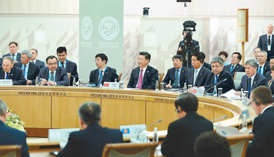 2015年7月10日,上海合作组织成员国元首理事会第十五次会议在俄罗斯乌法举行。国家主席习近平出席会议并发表重要讲话。新华社记者 庞兴雷摄