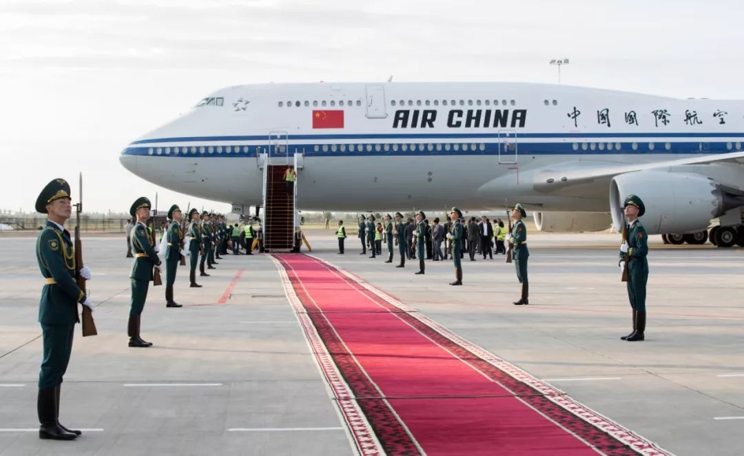 吉尔吉斯斯坦礼兵沿红地毯两侧列队。新华社记者 费茂华 摄