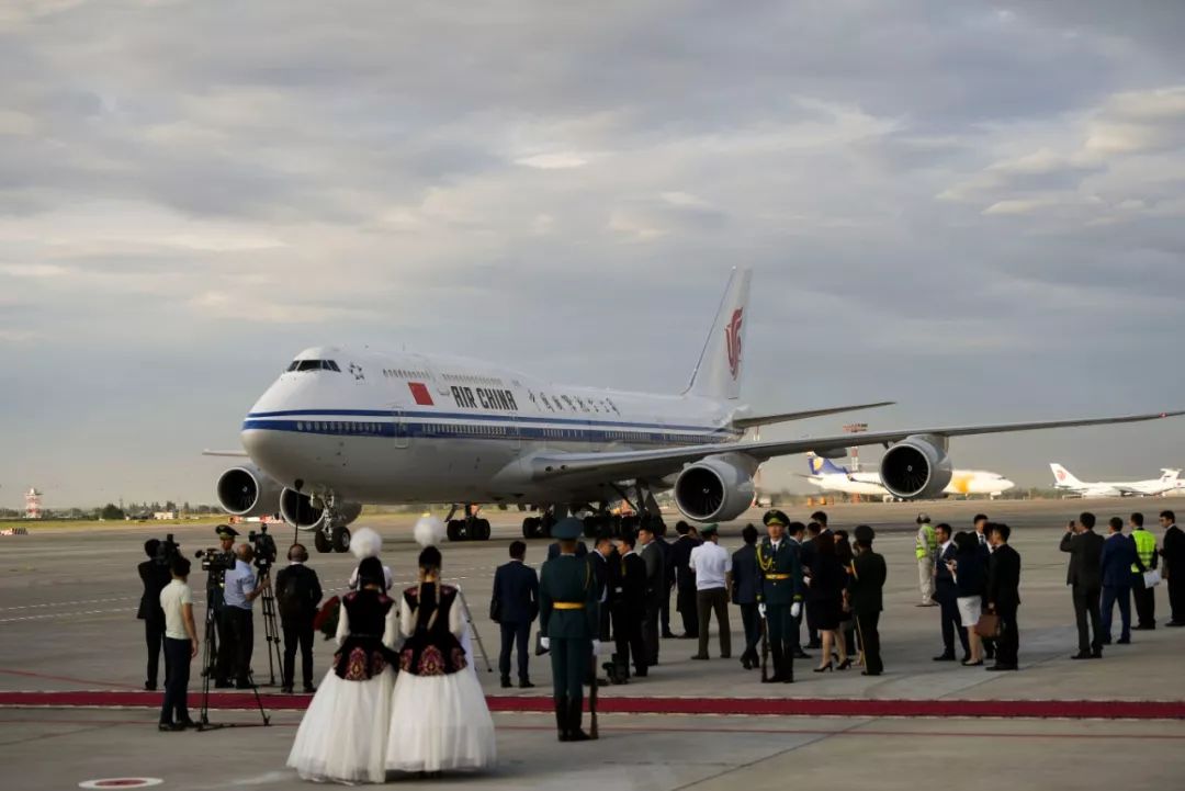 习近平同前来迎接的吉尔吉斯斯坦总统热恩别科夫亲切交谈。新华社记者 谢环驰 摄