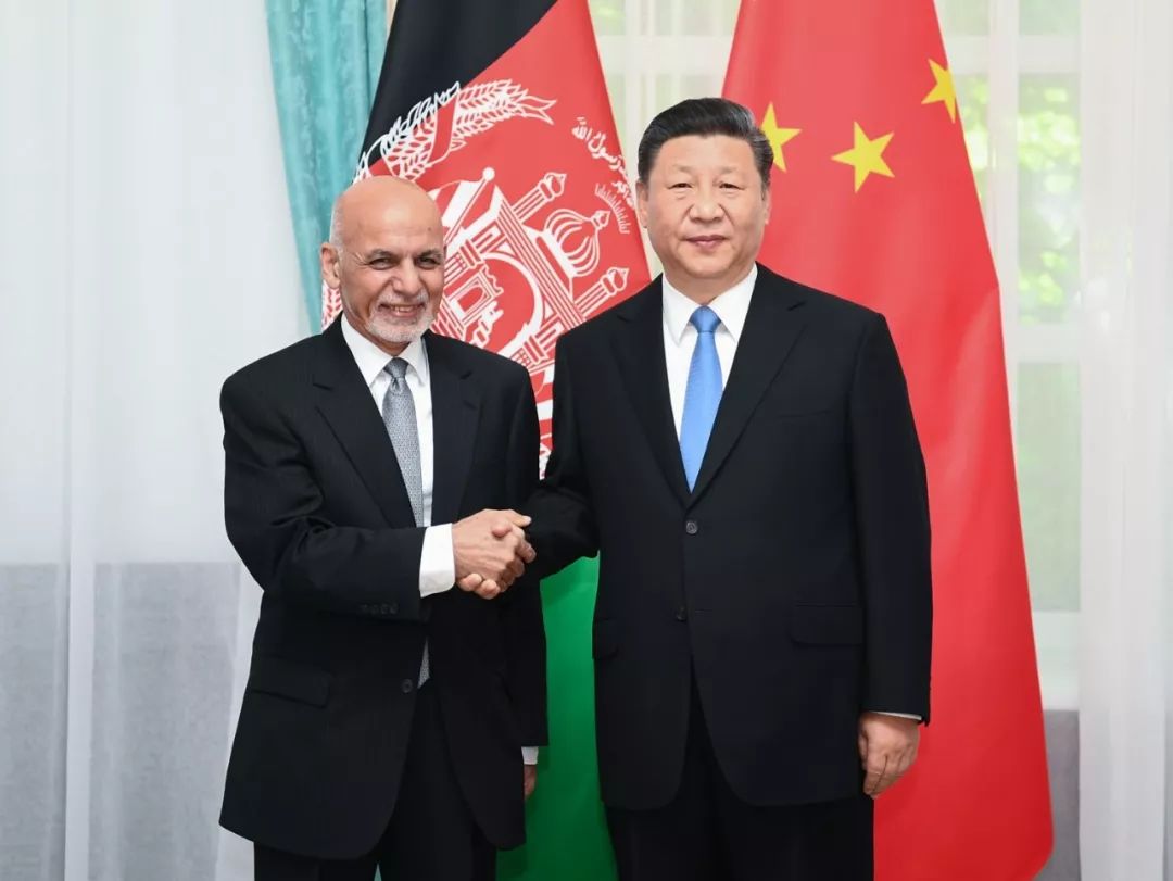 6月13日,国家主席习近平在比什凯克会见阿富汗总统加尼。新华社记者 谢环驰 摄