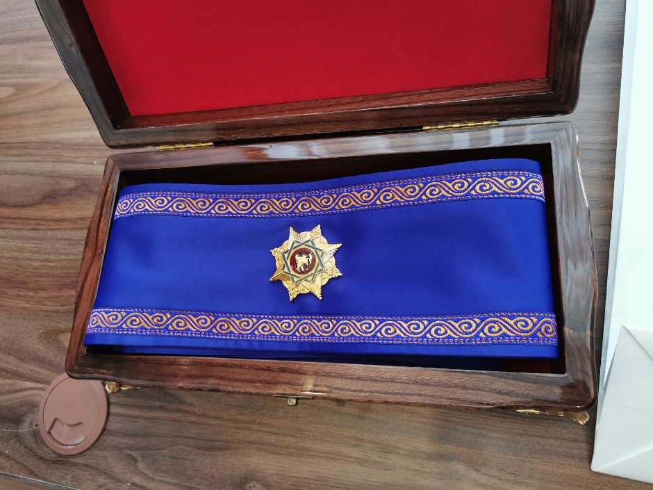 △当天,热恩别科夫向习近平授予“玛纳斯”一级勋章。“玛纳斯”勋章是吉尔吉斯斯坦国家最高奖章,分三个等级,一级为最高等级。这一勋章设立于1996年。2017年,俄罗斯总统普京也曾被授予“玛纳斯”一级勋章。