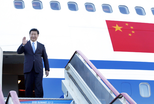 2013年9月4日,习近平抵达俄罗斯圣彼得堡,出席5日至6日举行的二十国集团领导人第八次峰会。