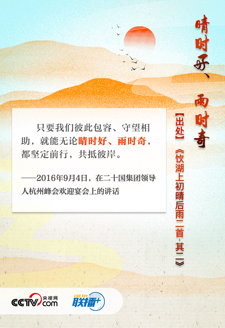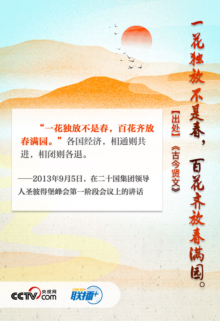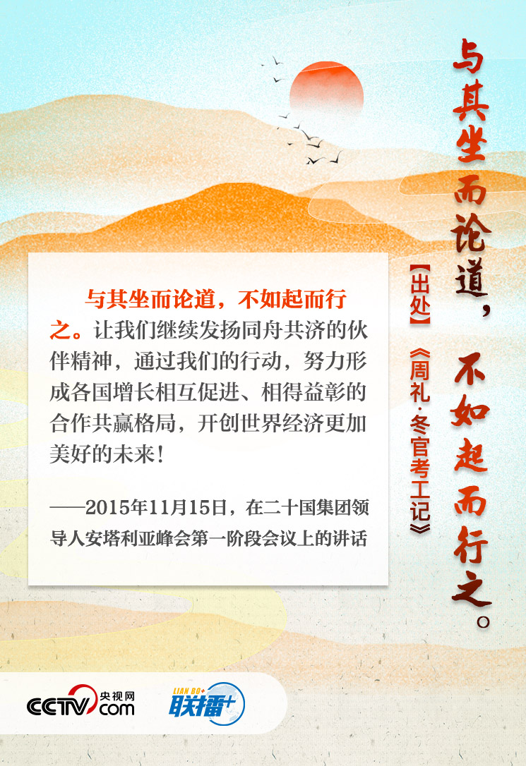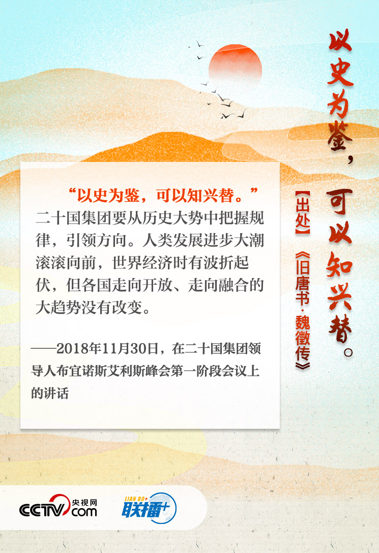 在历次G20峰会上的讲话中,习近平引经据典,深入浅出地阐释中方立场,为世界经济发展贡献“中国方案”。央视网与您重温经典话语,感受“G20时间”里的中国智慧。