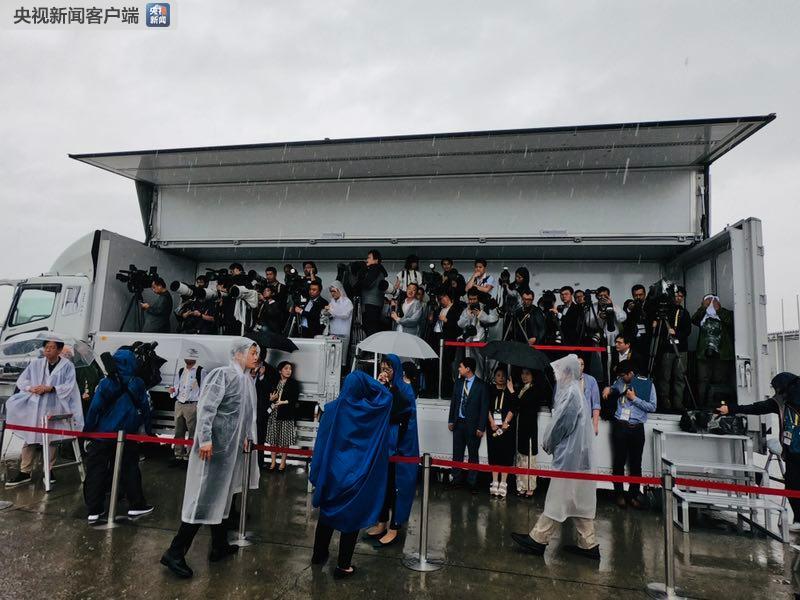 △27日上午,大阪,雨。等待报道习近平抵达大阪的记者