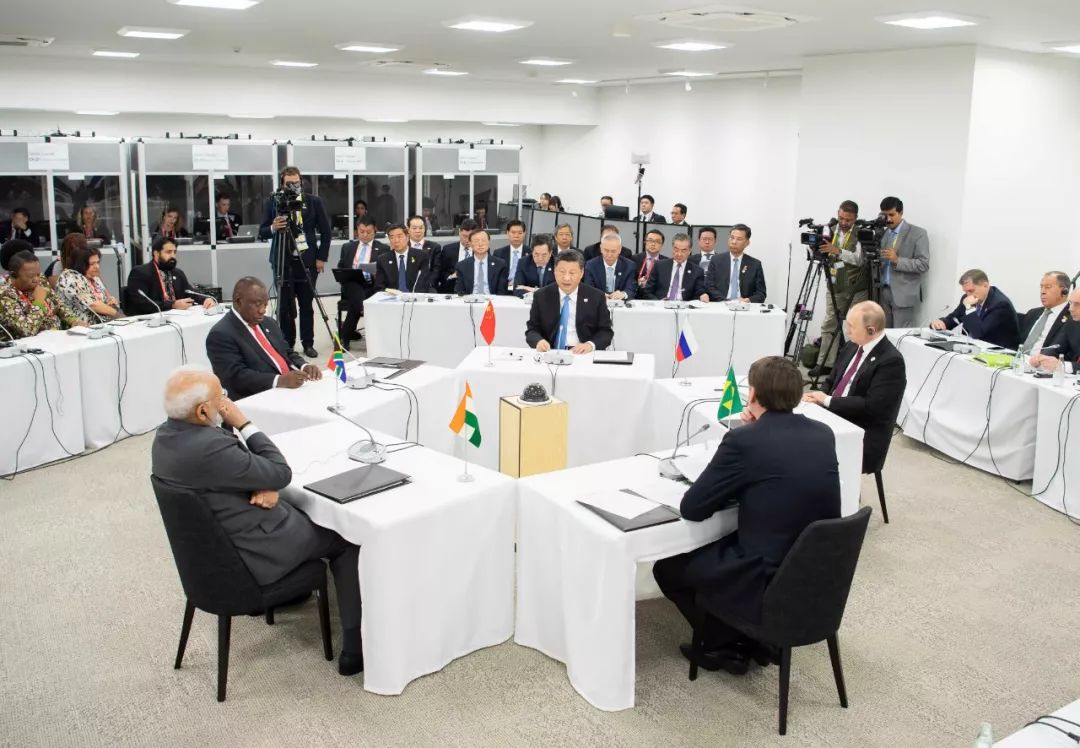 6月28日,金砖国家领导人会晤在大阪举行。国家主席习近平、巴西总统博索纳罗、俄罗斯总统普京、印度总理莫迪、南非总统拉马福萨出席。新华社记者 李涛 摄