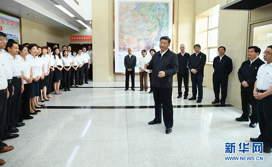 7月15日至16日,中共中央总书记、国家主席、中央军委主席习近平在内蒙古考察并指导开展“不忘初心、牢记使命”主题教育。这是16日上午,习近平到内蒙古自治区自然资源厅,实地调研指导开展“不忘初心、牢记使命”主题教育。 新华社记者 谢环驰 摄