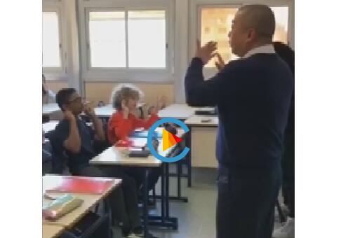 △摩纳哥夏尔三世初级中学的学生们合唱中文歌曲。摩纳哥的公立初中和高中均设立中文课程,十分之一公立高中生选择中文作为高考科目。(央视记者田晓春拍摄)