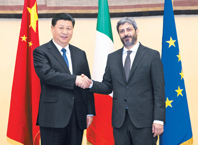 3月22日,国家主席习近平在罗马会见意大利众议长菲科。新华社记者 王 晔摄
