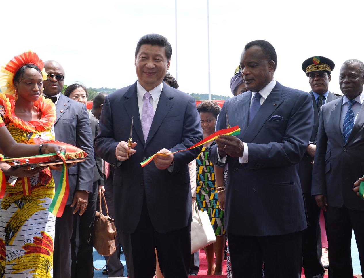 2013年3月30日,习近平同刚果共和国总统萨苏在布拉柴维尔出席中刚友好医院竣工剪彩仪式。