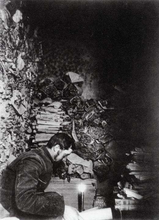 1905年10月,俄国人奥勃鲁切夫赶至莫高窟,以五十根硬脂蜡烛为诱饵,换得藏经洞写本两大捆。
