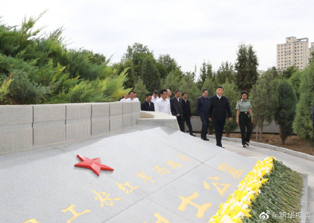 【习近平向中国工农红军西路军革命先烈敬献花篮】习近平总书记 20 日上午来到甘肃省张掖市高台县,瞻仰中国工农红军西路军纪念碑和阵亡烈士公墓,向西路军革命先烈敬献花篮,并参观了中国工农红军西路军纪念馆。(文字记者:张晓松、朱基钗 摄影记者:鞠鹏、谢环驰)