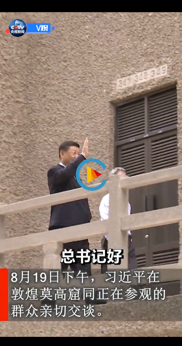 19日下午,正在甘肃考察的习近平总书记来到全国重点文物保护单位、世界文化遗产敦煌莫高窟。看到总书记来了,正在这里参观游览的群众激动地欢呼起来,纷纷向总书记问好。一位带着孩子自驾出行的游客从二层栈道探出头,他大声告诉总书记,他从江苏南通带孩子自驾过来。总书记招手笑道:“一路上可以看一看,孩子们可以长见识。”