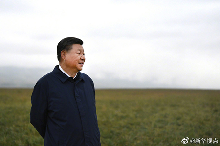 8月20日下午,中共中央总书记、国家主席、中央军委主席习近平抵达甘肃省张掖市山丹县,前往山丹培黎学校和山丹马场考察调研,了解当地职业教育培训和祁连山生态环境修复保护等情况。 新华社记者 谢环驰 摄
