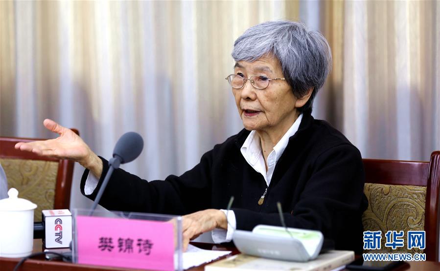 在敦煌研究院学习习近平总书记重要讲话座谈会上,敦煌研究院名誉院长樊锦诗发言(8月20日摄)。 新华社记者 郭刚 摄