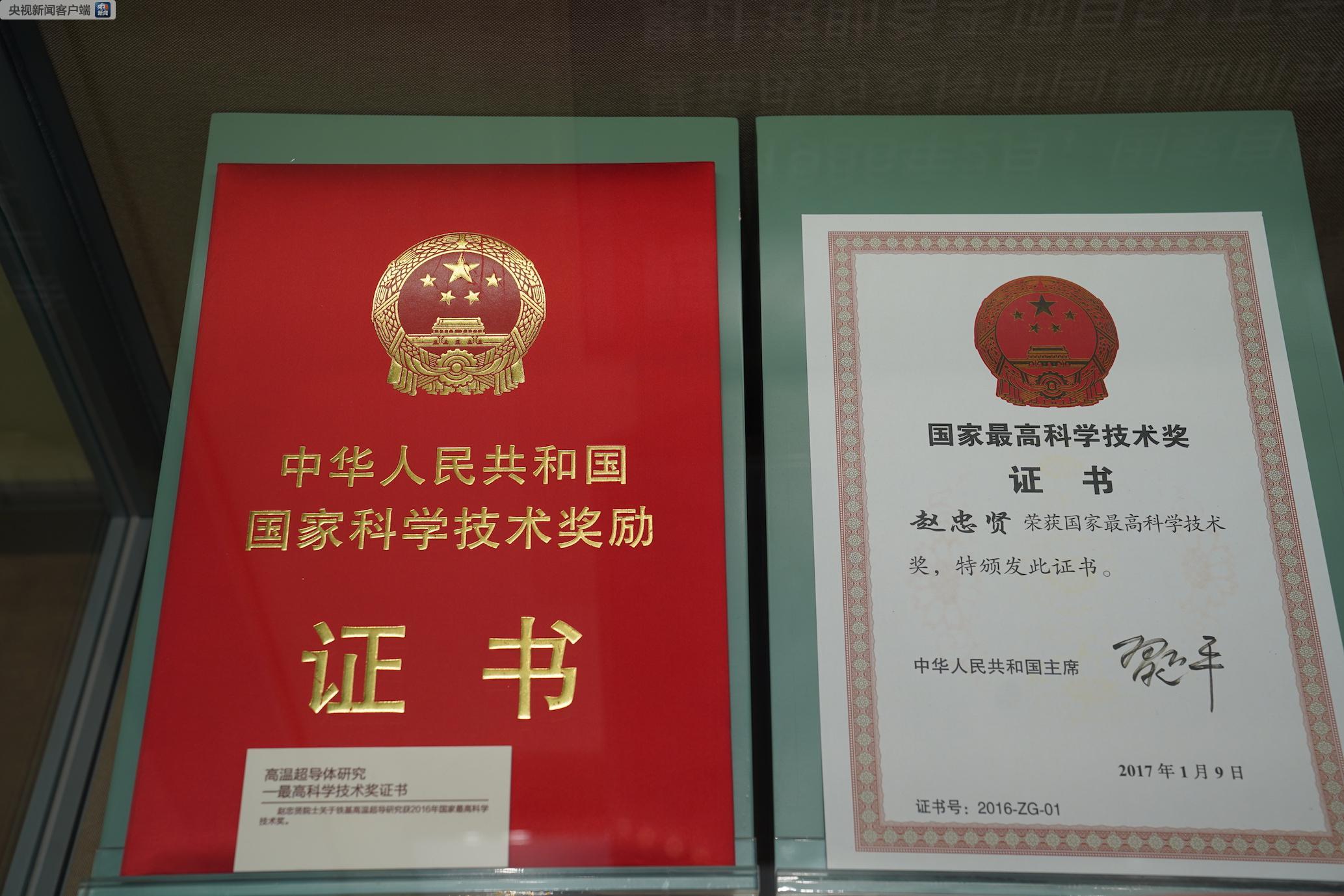 △2017年1月,赵忠贤获得国家最高科技奖。这是获奖证书。