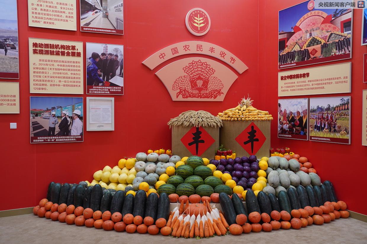 △总书记参观这一天,正好是中国农民丰收节。展区一角是浓浓的丰收景象。
