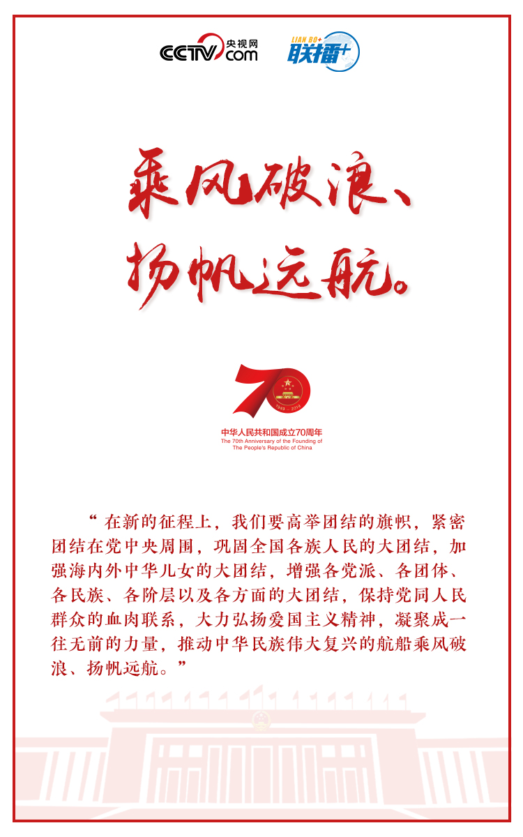 联播+9月30日,庆祝中华人民共和国成立70周年招待会在人民大会堂隆重举行。习近平总书记出席招待会并发表重要讲话。