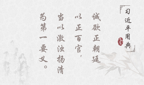 2006年1月24日,时任浙江省委书记的习近平,在省委办公厅系统总结表彰会上谈到“激浊扬清”时表示,清代思想家顾炎武在《与公肃甥书》中说:“诚欲正朝廷以正百官,当以激浊扬清为第一要义。”这就是说,要兴国安邦正百官,必须除恶扬善,扶正祛邪,弘扬正气。当前,我国经济社会正处于转型时期,各种深层次矛盾逐渐凸显,社会利益关系更为复杂,党员干部是否能做到正字当头,一心为民,秉公办事,更是直接关系到国家的安危存亡。党员干部如果能够做到坦坦荡荡、一身正气,其为官就会以民为本,视民为根,就会保持“利归天下,誉属黎民”的淡泊情怀,为人民执好政、掌好权,造福一方。这样,国家才会有希望,社稷才能更稳固。相反,党员干部如果失去了律己之心,随波逐流,放纵自己,就会混淆是非,走上邪路,给党的事业造成危害,使国家陷入“政怠宦成,人亡政息”的历史周期率。
