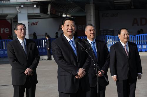 2009年1月10日,时任国家副主席习近平由珠海乘车抵达澳门考察访问。这是习近平抵达澳门拱北口岸后向前来采访的记者发表简短讲话。新华社记者 马占成摄