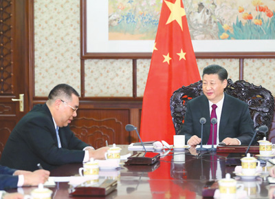 2017年12月15日,国家主席习近平在中南海会见来京述职的澳门特别行政区行政长官崔世安。新华社记者 谢环驰摄