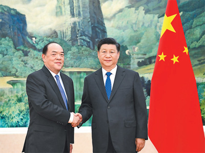2017年12月15日,习近平会见崔世安,强调中央将坚定不移贯彻“一国两制”方针,支持澳门特别行政区政府和行政长官依法施政、积极作为,支持澳门融入国家发展大局。