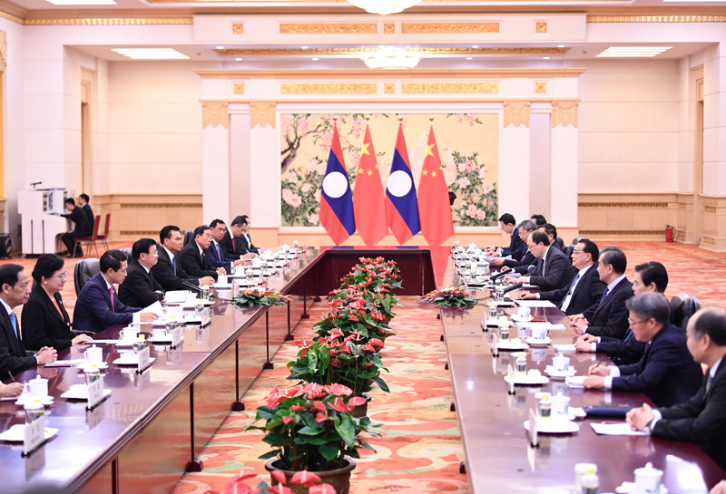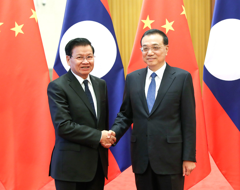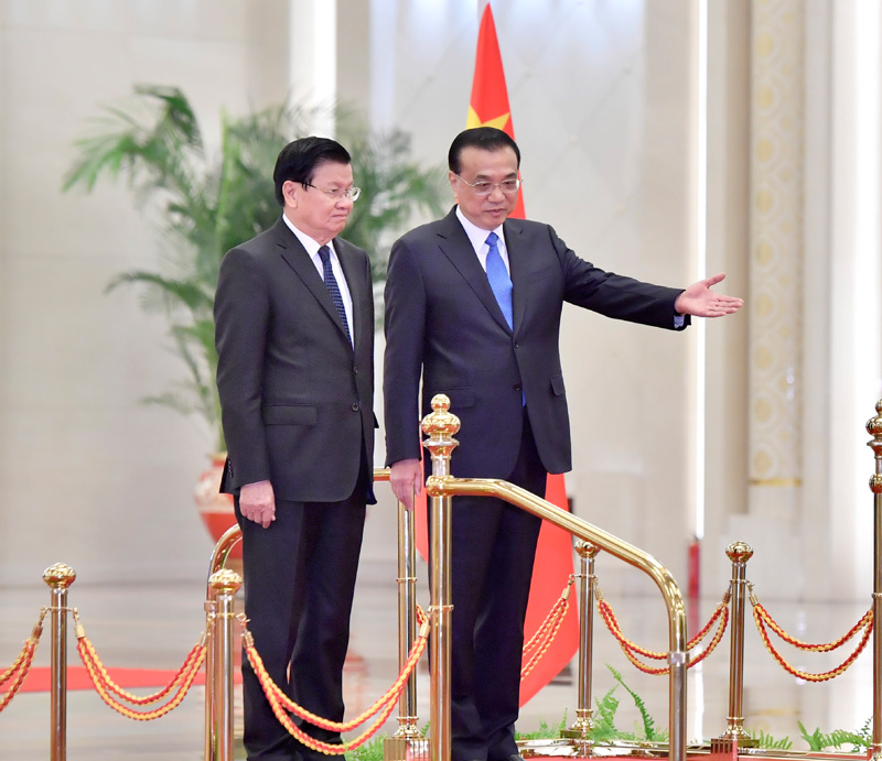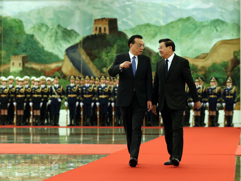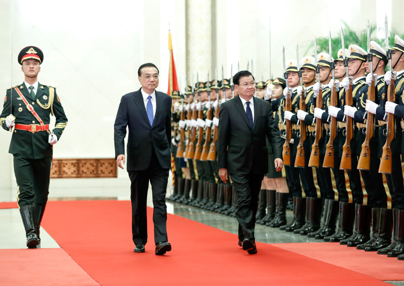 国务院总理李克强1月6日上午在人民大会堂北大厅举行仪式,欢迎老挝总理通伦来华进行正式访问。