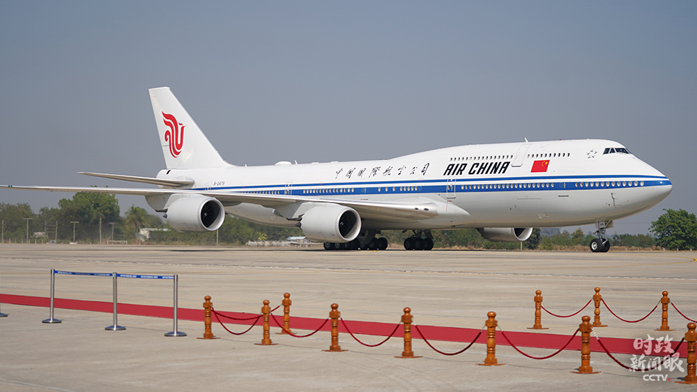 当地时间1月17日下午,习主席乘专机抵达内比都国际机场。