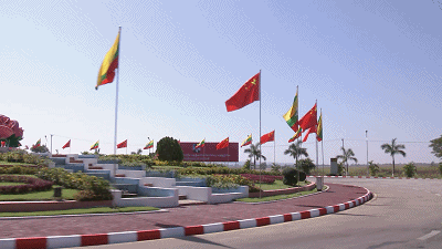 △中缅两国国旗在空中飘扬。(总台央视记者杨波拍摄)