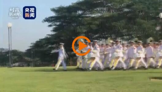 △欢迎仪式前,仪仗队和军乐团正在入场。(总台央视记者许永松拍摄)