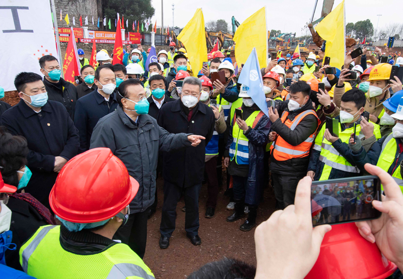 李克强专门来到正在加紧建设、集中收治疫情患者的火神山医院工地,勉励工人们加班加点,加快建设进度。他说,抗击疫情如救水火,你们是在与时间赛跑,医院建成将成为能够及时收治患者的“安全岛”。我们要千方百计确保所有患者应收尽收。李克强叮嘱要做好工人们的疫情防护。